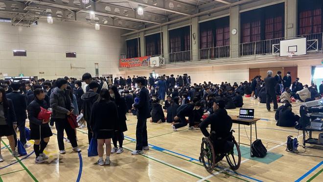 滋賀県東近江市から車いすのサッカーコーチである高橋さんにお越しいただき、「インクルーシブについて考える」という内容で、本校の1・2年生を対象に学習会を開いていただきました。