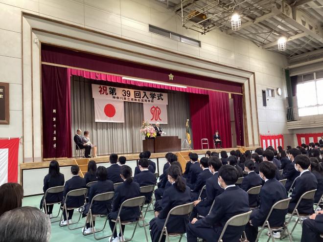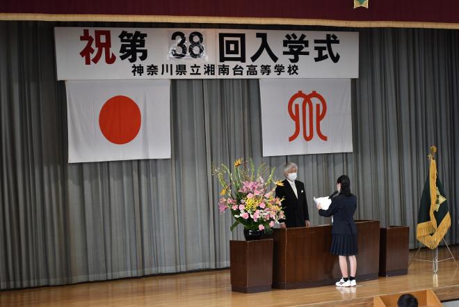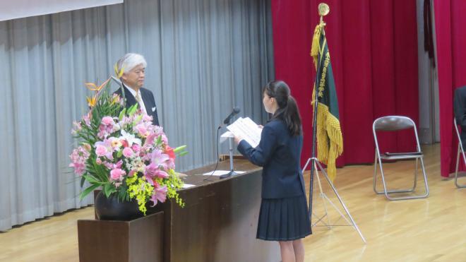 学校長からの入学許可の後、新入生代表による誓いのことばがあり、新入生一同、決意を新たに、高校生活をスタートさせました。