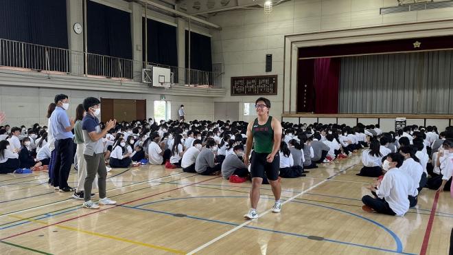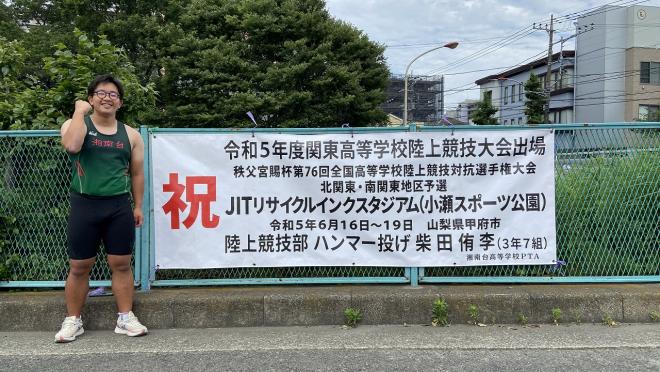 5月20日、令和5年第76回関東高等学校陸上競技大会神奈川県予選にて、本校3年生の柴田侑里さんがハンマー投げで42m81の記録を出し、6位入賞となりました。その結果、関東大会に出場することが決定し、6月5日に全校で壮行会をおこないました。