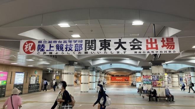 また、本校同窓会とPTAから応援の横断幕をいただき、通学路と湘南台の駅構内に飾ってもらいました。