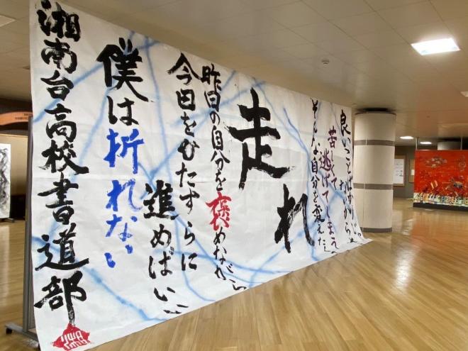 湘南台駅地下に新しく完成した「湘南台アートスクエア」のグランドオープンイベントにおいて、書道部が書道パフォーマンスを披露しました。