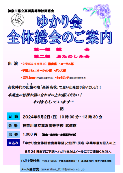 高浜高等学校 全日制 > 学校概要 > ゆかり会(同窓会)
