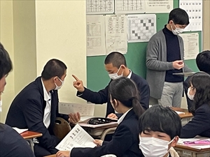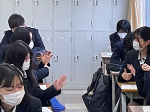 本校の特色となっている手話学習を実施しました。 五十音を一文字ずつ表現できる「指文字」や、ジェスチャーを活用して、さまざまな言葉を伝えあっていました。 多くの生徒が積極的に学習している様子が見られました。