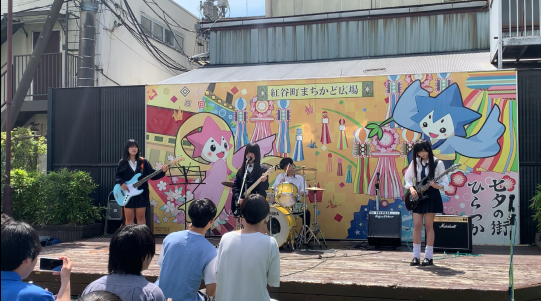 5月11日(日)、平塚市の紅谷町まちかど広場で行われた「BEAT&EAT Vol.13」に本校の軽音楽部が出演しました! 日頃の練習の成果を発揮し、40分間の間、商店街の方々に熱い演奏を届けました。 観覧して頂いた方からも、「高校の文化祭を見ているようで楽しい」と好評頂きました。 今後とも、本校軽音楽部は精進して参りますので、応援のほどよろしくお願いいたします。