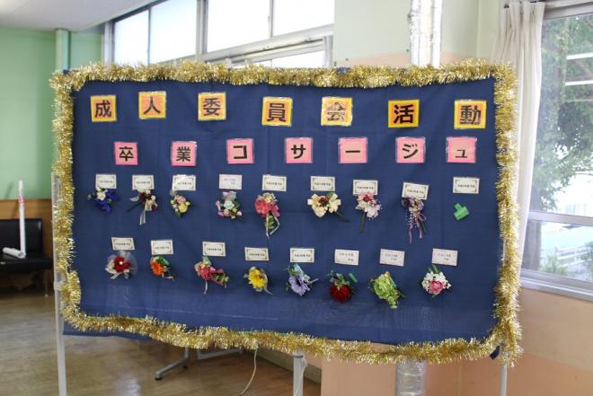 PTAによるコサージュの展示とどら焼きの販売が 行われました |