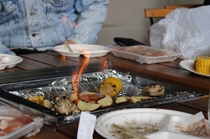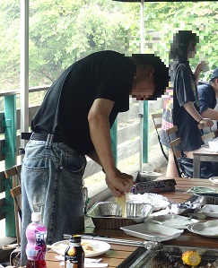 バーベキューでは蒸しパン作りにも挑戦。材料を入れ忘れたり落としたりというハプニングもありましたが、先生の応援をもらってどの班もおいしそうな蒸しパンができあがりました。