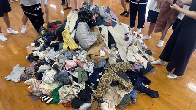 1年生のユニクロゼミでは地域の小学校・幼稚園にご協力いただき、連携して子ども服を集め、衣服を必要とする諸外国の難民へ届ける活動を行いました。暖かいご支援を誠にありがとうございました。