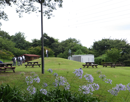 城山パークセンターから公園の利用しやすい公園の機能を学びました。水を使わないバイオトイレや車椅子で散策できる園路を見学しました。