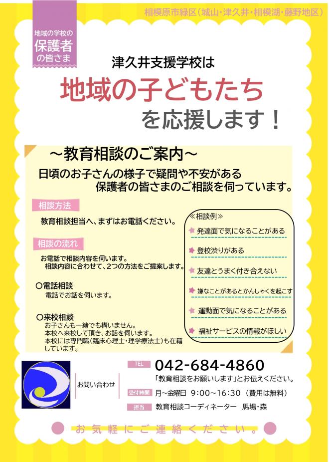 学習や発達の遅れ、生活や行動に配慮が必要な子供について相談に応じます。