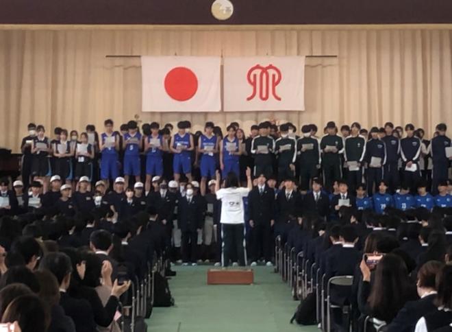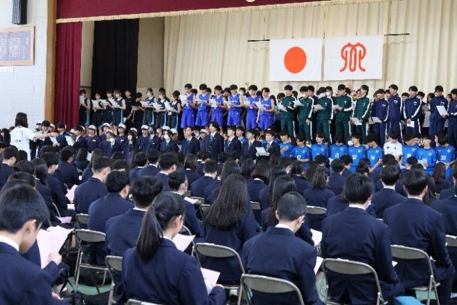4月8日、50期生(254名)が入学しました。おめでとうございます。校歌紹介では250名以上の在校生が部活動のユニホーム姿で校歌を熱唱しました。