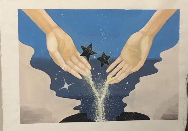 顧問の先生の熱心なサポートもあり、自分がやったことのない種類の作品にも手を出しやすいです。 年に2回の高校美術展や文化祭のほか、交通安全ポスターや記念のポスターなど作品を出展できる機会が多いです。