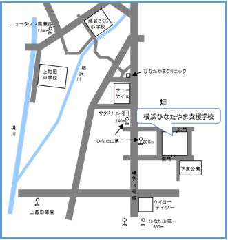 - 神奈中バスの瀬谷駅南口より「立場ターミナル」行に乗車し、「ひなた山第二」下車徒歩3分(およそ200m)