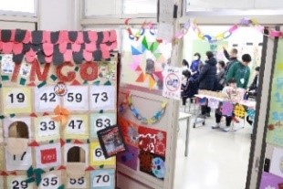 よこひな祭に向けて、各学年2個ずつゴミ箱を段ボールを使って作成しました。また分別できるように「燃えるゴミ」「プラごみ」の表示も掲示しました。 |