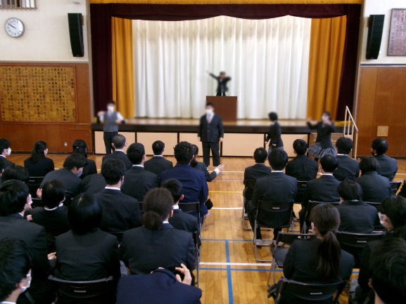 最初にみんなで校歌を斉唱したあとに、校長先生から「修了式は終わりでもあるが次の始まりでもある。新1年生に立派な姿を見せてほしい」という話がありました。