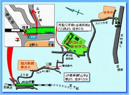 横浜駅よりJR根岸線にて4駅9分、山手駅下車。徒歩13分。