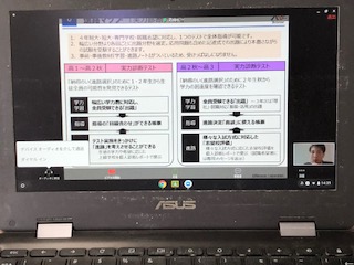 教員対象の研修会があり、私たち教員は、リモートにて、実力診断テスト結果分析や活用方法等についての研修を受講しました。
