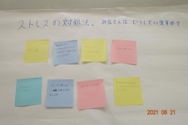 ↑ワークショップ課題「ストレス対処法」