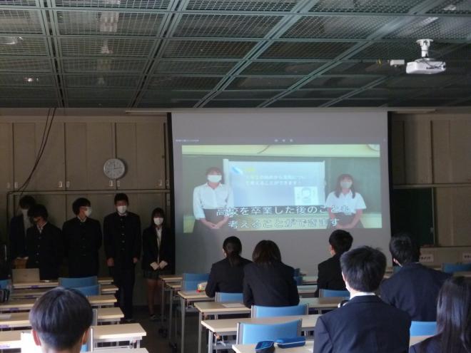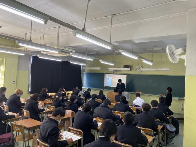 11月26日の「総合的な探究の時間」に、隣接する横浜市立日野中央高等特別支援学校との交換交流発表会を行いました。それぞれの学校の生徒が学習や部活動、学校行事など「自校の魅力」について動画を作成し、相手校で発表しました。また、発表後は、相手校の生徒の質問に答えたり意見を交わしました。この交流発表会をとおして、「福祉マインド」に対する意識を高めることができました。