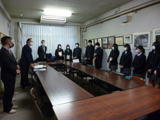 12月16日(木)、本校に栗原港南区長が来校され、社会福祉部、ボウリング部が「港南区青少年文化スポーツ活動区長表彰」を受賞しました。この表彰は、部活動で全国大会へ出場し、優秀な成績を収めたため表彰され、その時の様子は、港南区ホームページにも紹介されました。