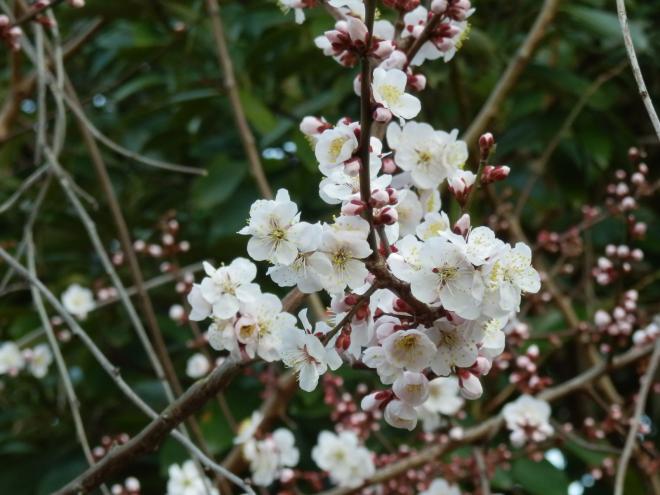 ところで、「校長だより 第11回」で本校の敷地に白梅が見られないと伝えましたが、1本ありました。昨年はサクラとほぼ同じ時期に開花したため気付きませんでしたが、今年はサクラの開花が遅く、ウメ(白梅)だったことが分かりました。