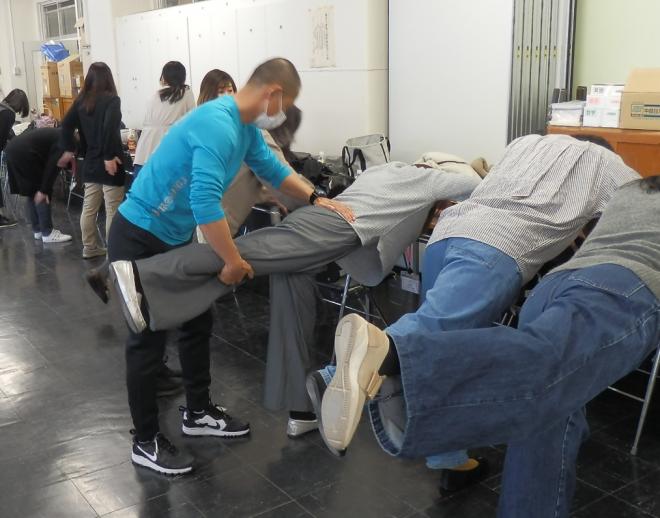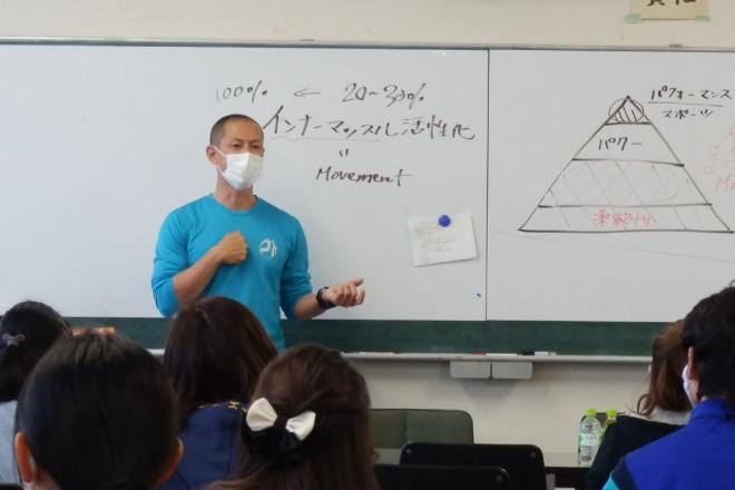 講師は J.T.STRENGTH & CONDITIONING代表取締役の高橋純一先生(写真左側)で、先生の体験や実践をもとにしたアスリートコンディショニングに関する講演と、インナーマッスルを強化する方法等、感染症予防を図りながら、参加者が実際にストレッチを体験する活動を行いました。