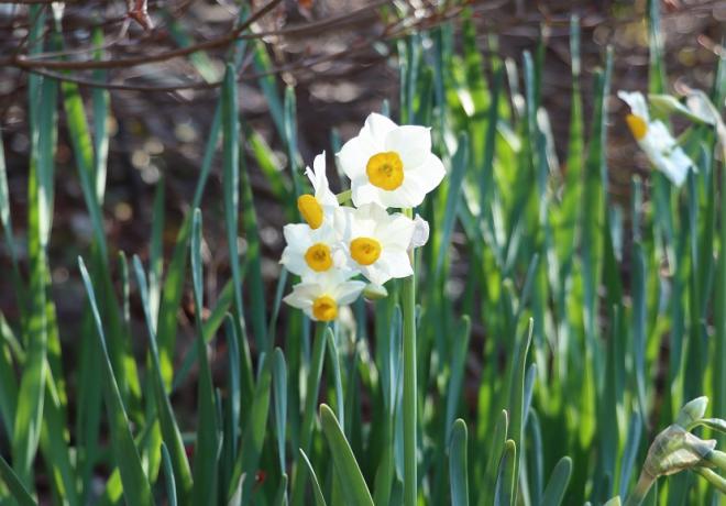 今年は1・2月に比較的気温の低い日が続いたため、昨年は2月中旬に花の盛りを終えたスイセンでしたが、今年は開花期間が長く、今でも咲いています。