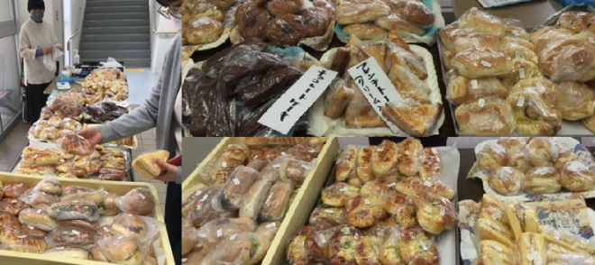 昼休みに生徒昇降口で「Fuke」さんがパンを販売しています。