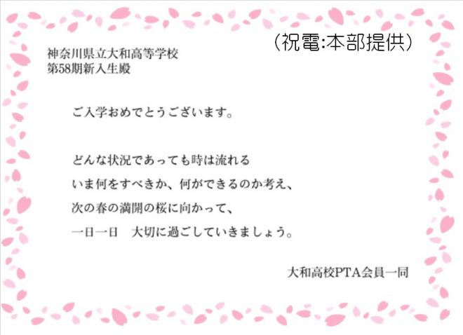 大和高等学校 > 在校生・保護者の方へ > PTAより > PTAより 58期生ご入学おめでとうございます