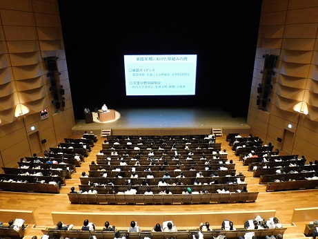 和4年8月11日(木/祝)に、大和シリウスにて第1回学校説明会を行いました。当日は364名が来場されました。冒頭に吹奏楽部の演奏があり、その後の説明会では、本校での学習や生活についての話があり、部活動・同好会の紹介動画も上映されました。