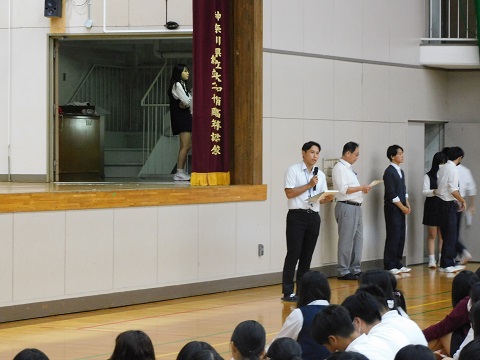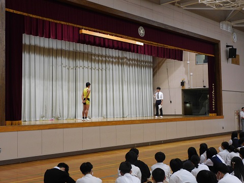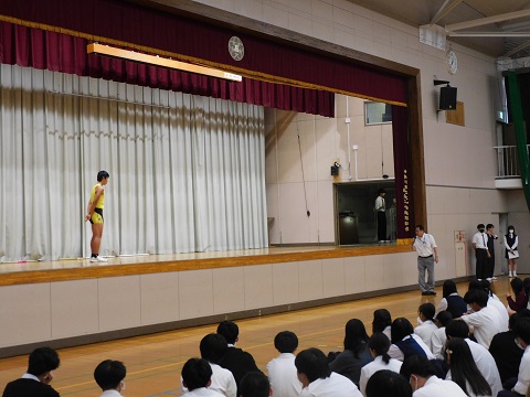 10月19日(土曜日)20日(日曜日)に栃木県宇都宮市にあるカンセキスタジアムとちぎで行われる関東高校新人大会に出場します。顧問による出場選手の紹介、選手による大会への抱負、生徒会と校長先生による激励の言葉がありました。