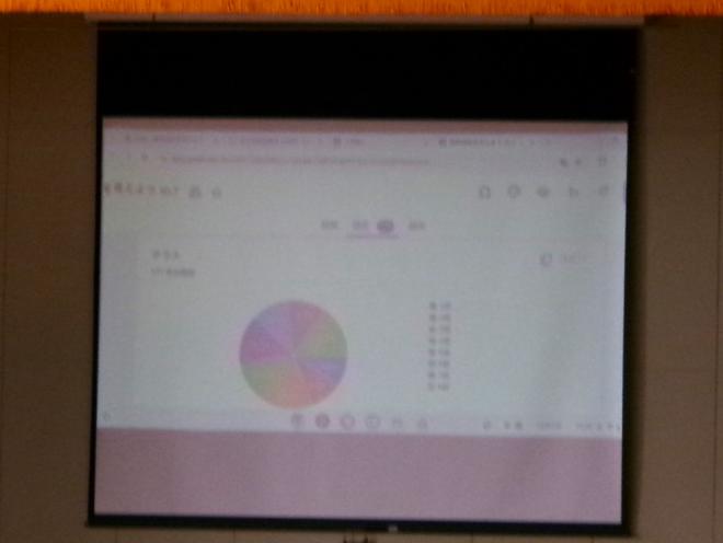 大事にしたい「価値観」をいくつかのクイズで探り、実際にGoogleフォームを活用して1学年全員の価値観の傾向を大画面で確認しました。