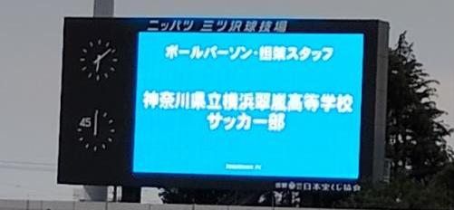 2025年5月21日 本校近隣の三ツ沢球技場で開催された横浜FCの公式戦にてボールサーバーや担架スタッフをさせていただきました。プロの真剣勝負に接することができ、貴重な経験となりました。