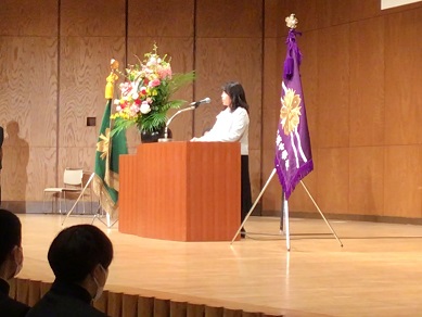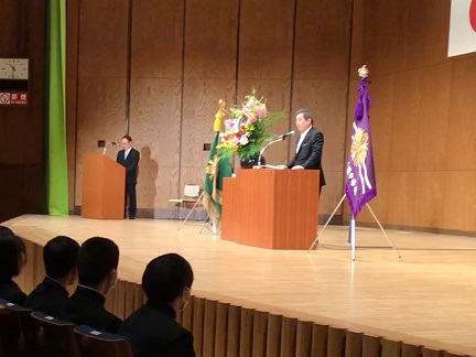 校長式辞の後、翠嵐会会長より「翠嵐高校には人と刺激し合い、互いを認め合い、人間性を育む仲間がいる」こと、翠和会会長より「自分の気持ちを自分の言葉で伝えることを大切にして欲しい」と、新入生に向けて激励の言葉を頂きました。