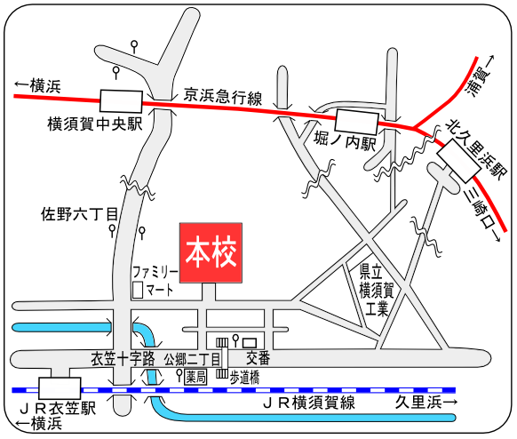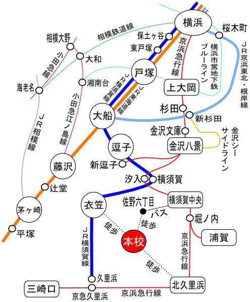 - 京浜急行線「横須賀中央」より衣笠駅行バス「佐野六丁目」下車徒歩6分