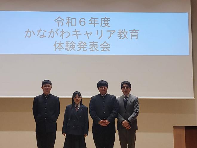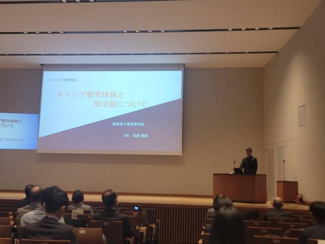 神奈川県立総合教育センターで行われた「かながわキャリア教育体験発表会」に本校電気科化学科の3年生が参加しました。