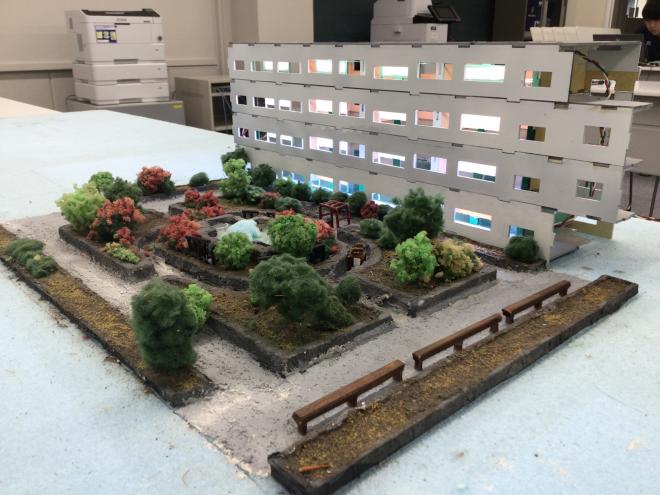 STEAM教育として行っている科合同の課題研究では本校のジオラマ模型作りをしています。