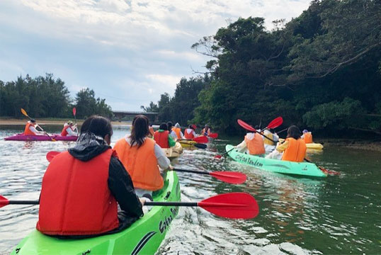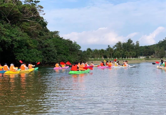 今日は、マリンスポーツ体験、自然体験、文化体験、1日留学の4つのコースに分かれての体験学習でした。