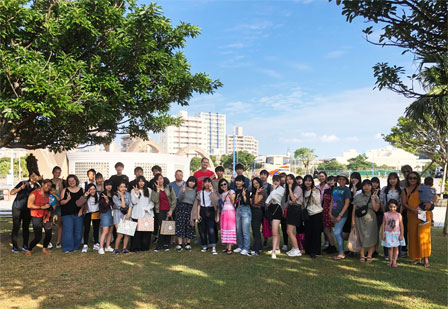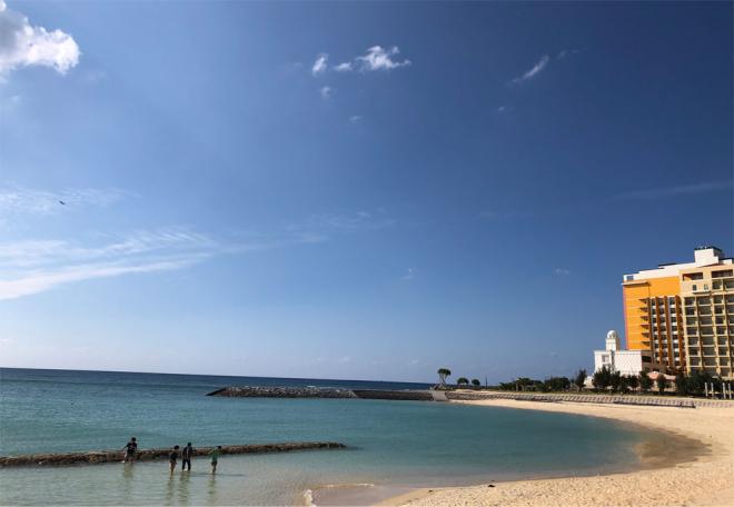美浜アメリカンビレッジにほど近い北谷サンセットビーチでホストファミリーと顔合わせ。