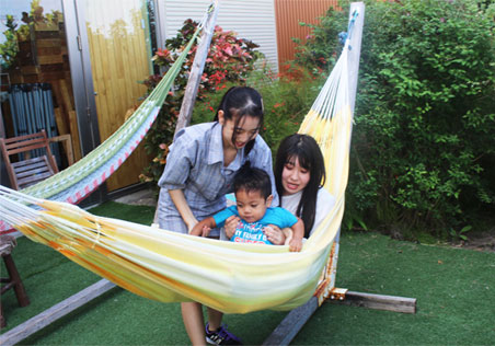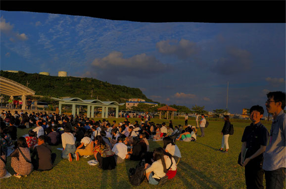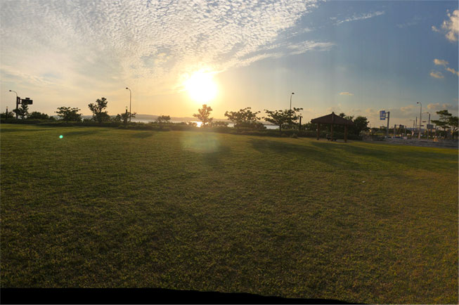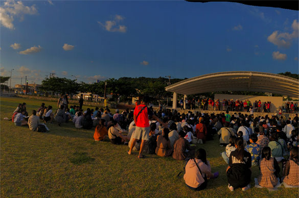 平安座の公園にて、それぞれの宿泊先ご家族と顔合わせ。