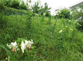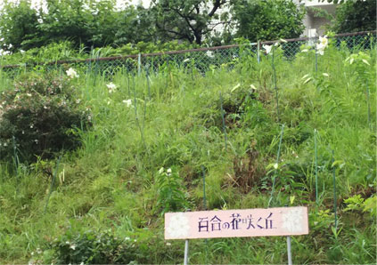 正門付近から満開の「百合の花咲く丘」がご覧いただけます。