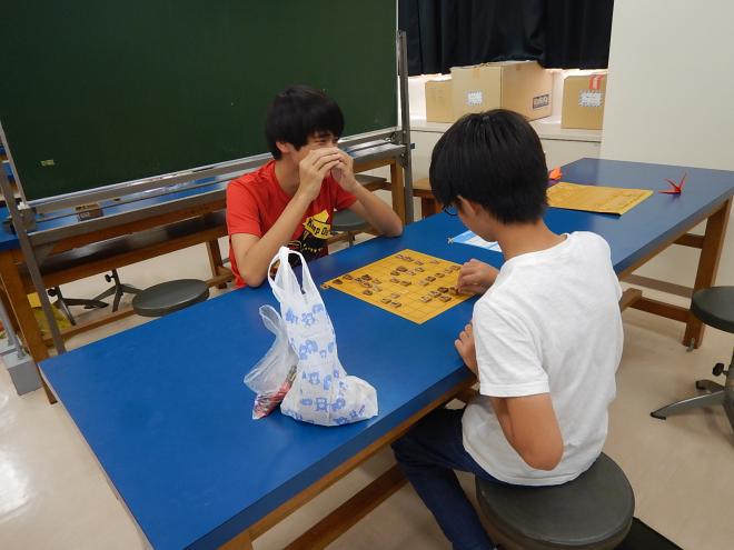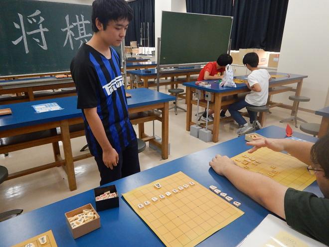 将棋部は、週に2回、物理室にて、「楽しく将棋を指す」をモットーに活動しています。それぞれの部員が自分で目標を立て、自分の戦術を極めるために努力しています。